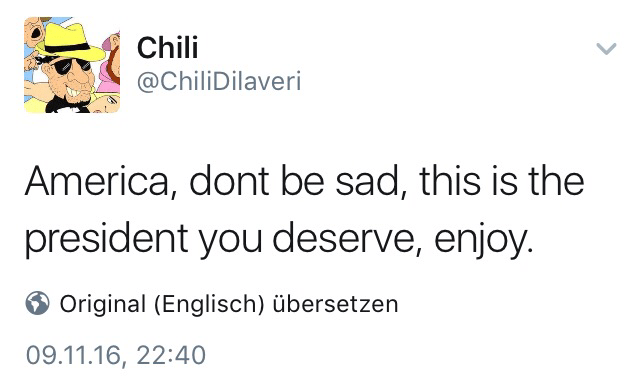 Ich bin auch froh darüber, dass der nicht mein Land repräsentiert.
