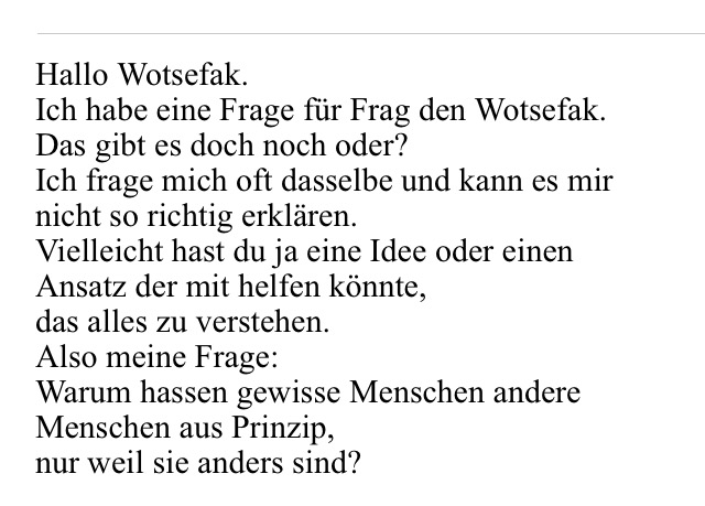 Lange her, doch hier ist es wieder: Frag den Wotsefak!