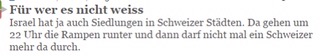 Das sind keine Israelischen Siedlungen, sondern jüdische Quartiere. Die Rampen gelten für Verkehrsteilnehmer, welche nicht Anwohner sind.Und man darf da als Schweizer jeder Zeit rein. Wie kommen denn sonst die Schweizer Juden nach Hause?