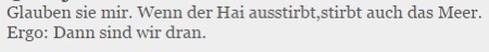Weil es sonst keine Artikel mehr gäbe die du kommentieren könntest, ich keine Kommentare zum kommentieren mehr hätte, der Blog sterben würde, wodurch der Hai ausstirbt und wir wissen ja was dann passiert!