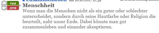 144 Likes und 309 – ich wiederhole: DREIHUNDERTNEUN!!! Dislikes.